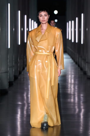 Trench oversize en latex nude aperçu sur le défilé Avellano