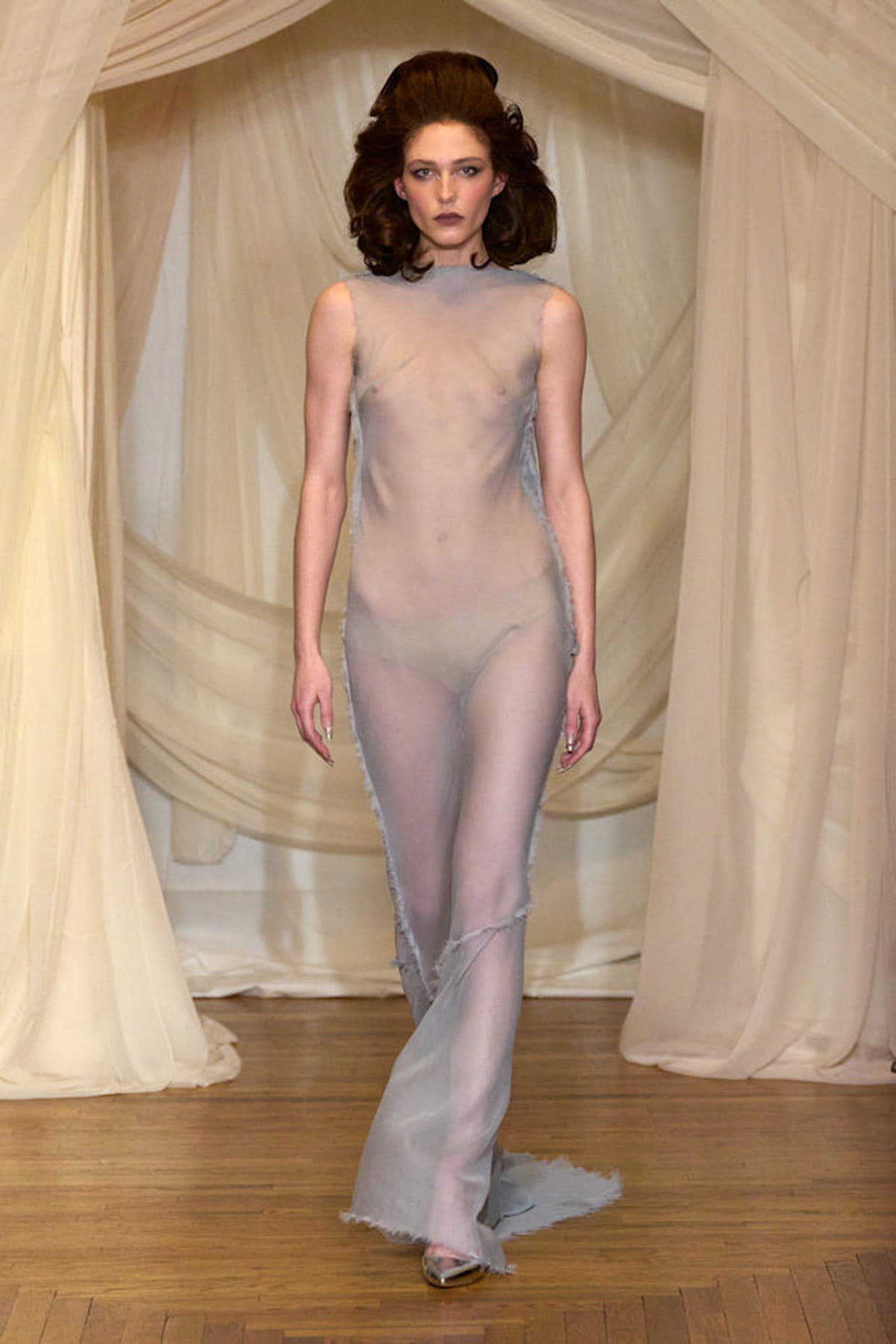 Robe transparente pastel aperçue sur le défilé Christian Cowan