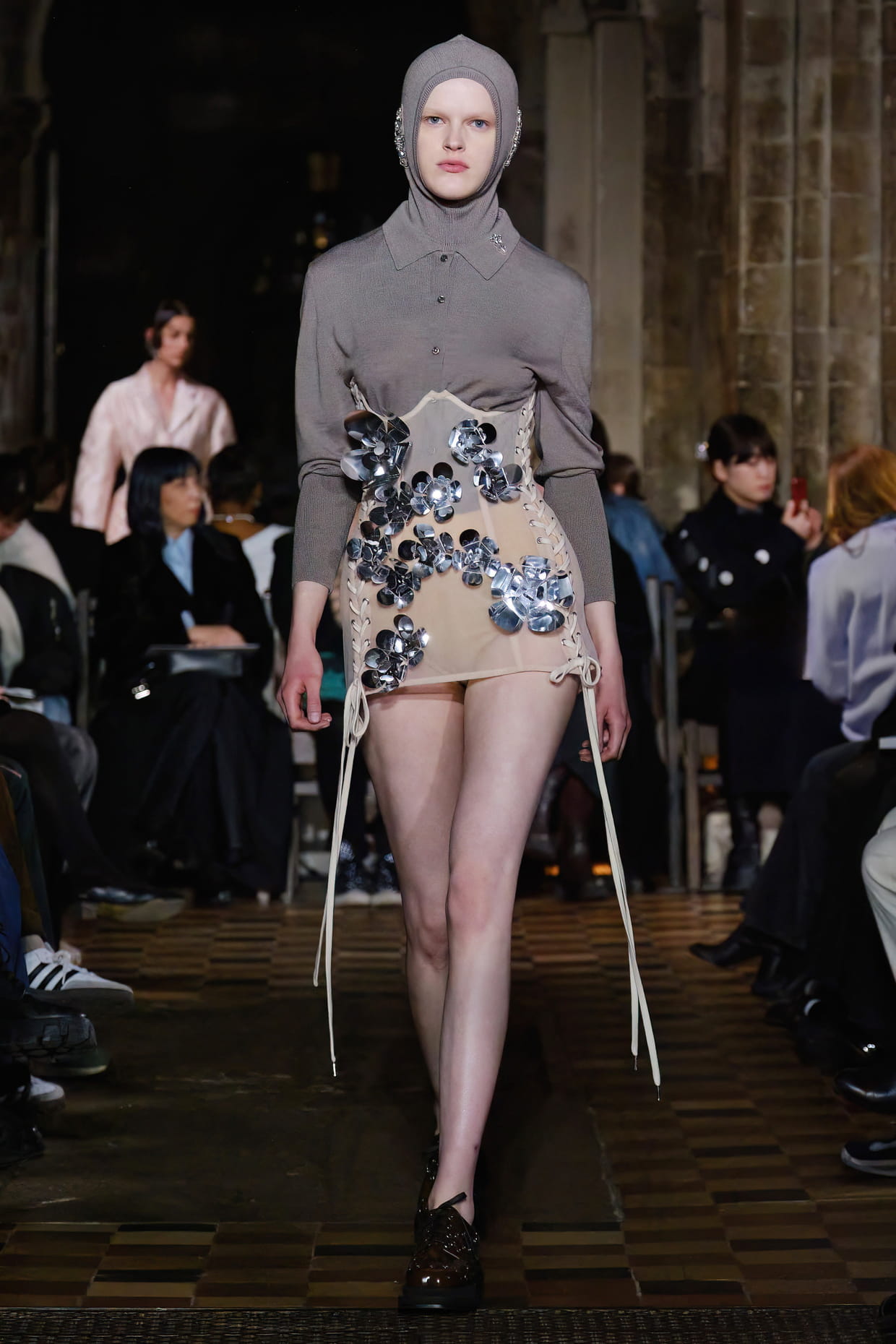 Mini robe corset transparente et top gris à capuche aperçus sur le défilé Simone Rocha automne-hiver 2024-2025 à Londres.