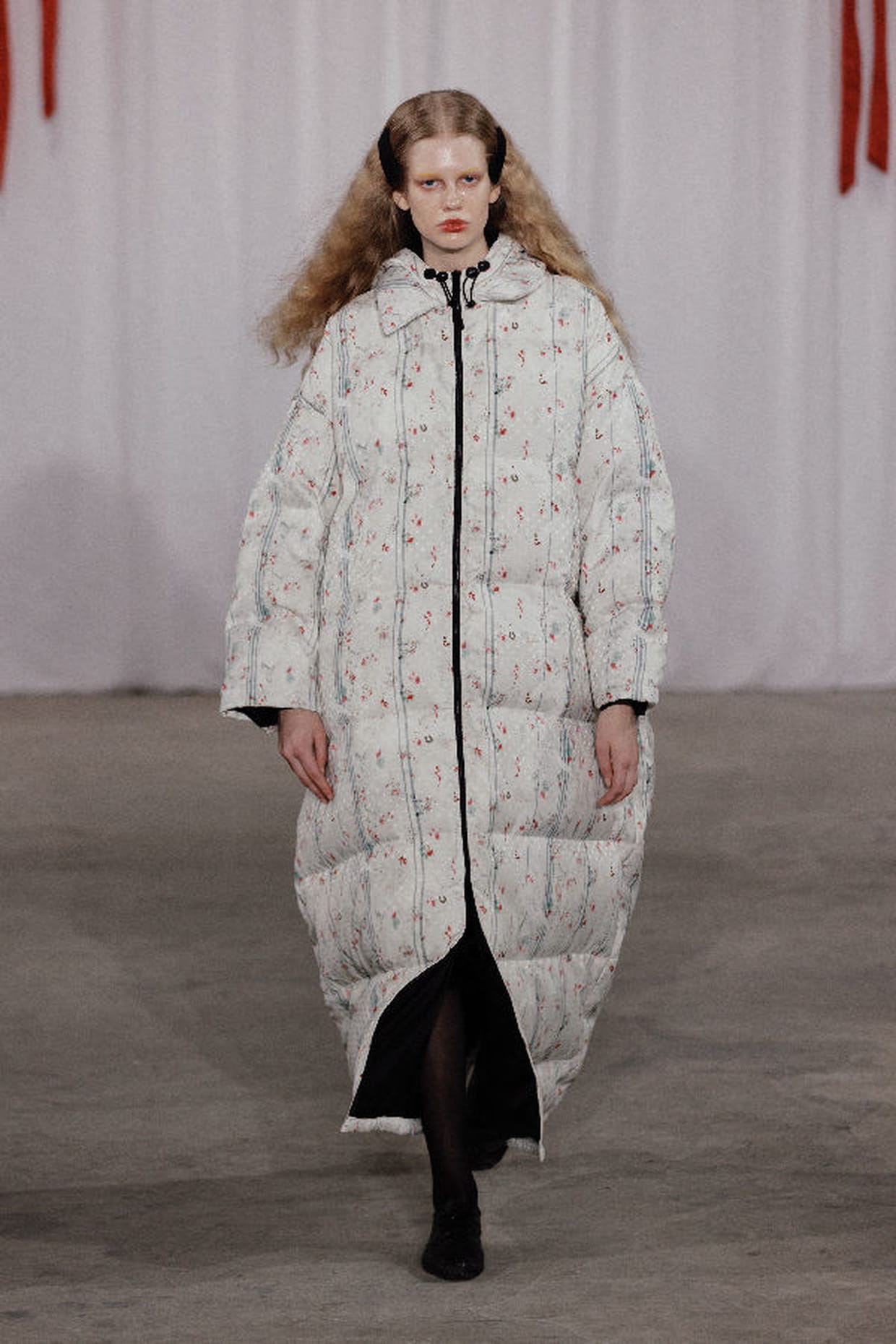 Doudoune longue à fleurs aperçue lors du défilé Meruert Tolegen automne-hiver 2024-2025 à New York.