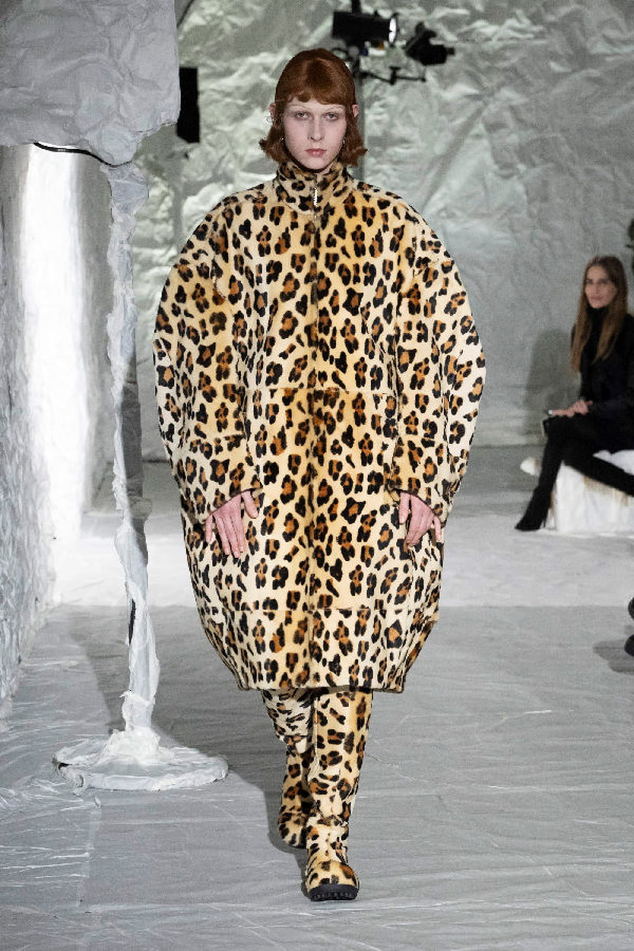 Manteau oversize imprimé léopard aperçu sur le défilé Marni