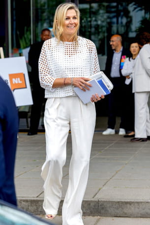 Pour assister à une réunion de la National Coalition for Financial Health dans la ville d'Utrecht, le 2 juillet 2024, Maxima des Pays-Bas avait opté pour un look élégant dans les tons de blanc. Vêtue d'un pantalon fluide blanc cassé, d'une blouse ajourée et d'une paire de sandales blanche, la souveraine irradiait de beauté. Quel sens du style !
