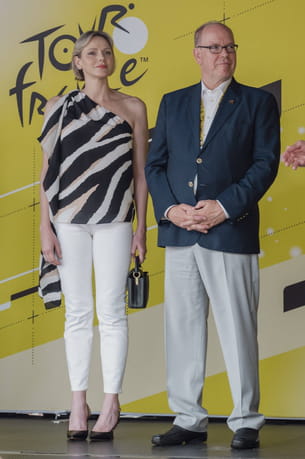 Présente sur la ligne de départ de la dernière étape du Tour de France reliant Monaco à Nice, ce dimanche 21 juillet, la princesse Charlène avait jeté son dévolu sur une silhouette aussi moderne que tendance. Au programme ? Un jean blanc, un mini sac noir, des escarpins de la même couleur et un top one-shoulder au motif zèbre qui dévoilait ses épaules nues tout en subtilité.