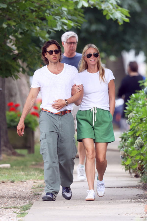 Gwyneth Paltrow a été aperçue dans les rues de New York. Au bras de son mari Brad Falchuk, la star avait opté pour un vêtement au confort inégalé : un short de sport mi-long vert avec un cordon de serrage à la taille. Elle le portait avec des sneakers et un T-shirt blanc. Le résultat ? Un look décontracté qu'on lui emprunte volontiers. Et pour pousser la frontière du cool encore plus loin, elle avait misé sur des lunettes de soleil Ray Ban.
