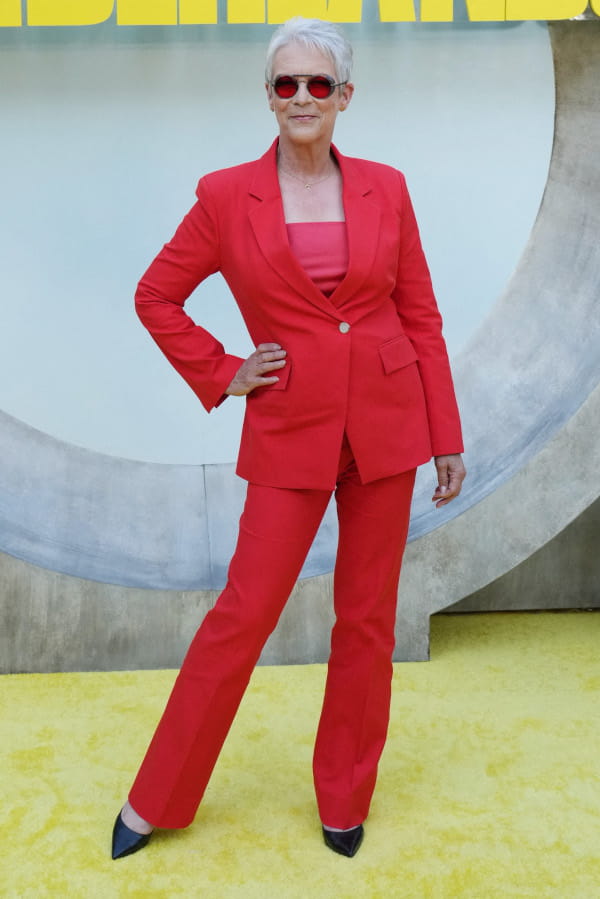 Présente à un événement pour le film Borderlands, ce mardi 6 août, Jamie Lee Curtis a misé sur une seule et même couleur côté look : le rouge. Ce dernier était composé d'un pantalon droit et d'une veste de blazer fermée. Le problème ? Le top en dessous n'était pas dans une nuance identique, ce qui casse un peu la silhouette. Une tenue accessoirisée d'une paire de lunettes rouge et d'escarpins noirs.