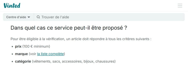 Deuxième danger ? En cas de contrefaçon, impossible de compter sur les règlements Tiktok ou Vinted pour réclamer une vérification de l'authenticité du vêtement, et donc un dédommagement. Sur Vinted, la vendeuse en question fixe ses lots à 1 euro : or, il est écrit noir sur blanc qu'on ne peut faire appel au service d'authentification que pour les transactions de 100 euros minimum.