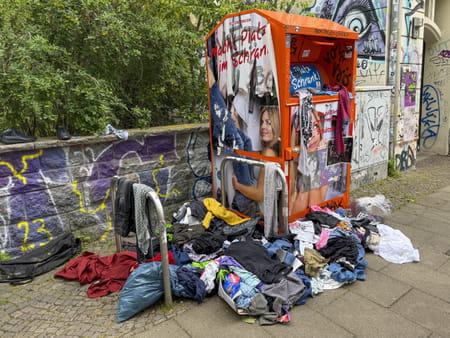 Comme vous le savez, il suffit de déposer les vêtements dont on veut se débarrasser dans les bornes prévues à cet effet. Similaires à des bennes à ordure, elles se situent à proximité de quartiers résidentiels. On en compte 22 000 sur le territoire français - pour celles gérées par l'association Le Relais. En juillet, c'est d'ailleurs elle qui interpelle les autorités sur les difficultés du marché. Dans l'incapacité de couvrir ses charges financières, elle cesse volontairement de vider ses bornes et décide de déverser des tonnes de vêtements devant des magasins Decathlon et Kiabi - une opération destinée à mettre un coup de projecteur sur les obstacles rencontrés. Car en 2025, Le Relais n'arrive plus à être rentable. Comment l'expliquer ?