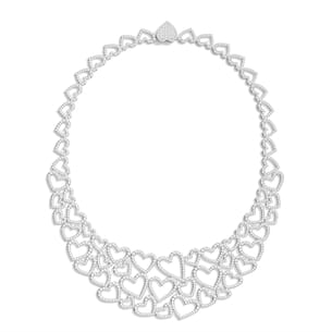 Un collier statement en argent 925 avec un motif de cœurs entrelacés ou superposés, créant un plastron imposant et romantique.