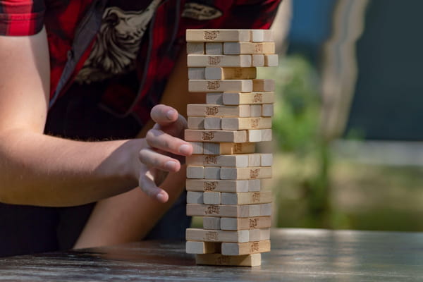 La griffe de luxe Bottega Veneta a ainsi livré sa propre version d'un jeu de société auquel on a tous joué étant enfant. Né en 1983 et édité sous la licence Hasbro, il a égayé le quotidien de nombreuses générations - de la nôtre en passant par celle de nos parents. Le principe est simple : dans une tour bâtie avec 54 morceaux de bois, les participants doivent, chacun leur tour, retirer une pièce pour ensuite la replacer au sommet de la "tour infernale". Le but ? Qu'elle ne s'effondre pas et qu'on soit le dernier à la garder intacte. Ce jeu s'appelle le Jenga.