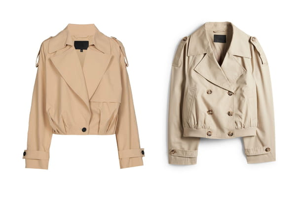 L'une affiche une silhouette plus classique, avec deux rangées de trois boutons et une coupe un peu plus resserrée au niveau de la taille. L'autre, plus originale, n'affiche qu'un bouton sur le devant et d'innombrables plissés. Mais si les détails ornementaux diffèrent entre les deux pièces, le prix reste le même : 39,99 euros.