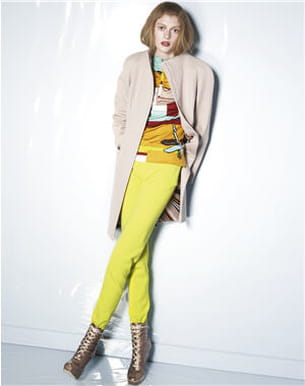 Que seraient les créations d'Emilio Pucci sans ces fameux motifs aux couleurs chatoyantes ? Pour la maison italienne, l'automne ne fera pas grise mine grâce à ce pantalon couleur citron vert et sa tunique multicolore.