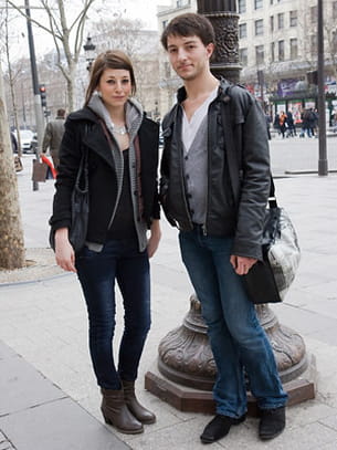 Elle : une veste Jennifer, un pull Zara, des bottes Eram et un sac Pimkie.