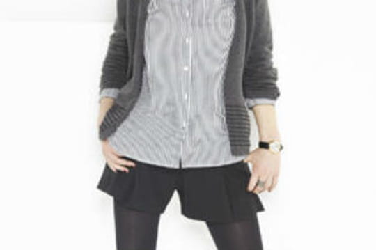 Pour un look d'hiver, on va miser sur un look un peu plus élégant, pourquoi pas pour le travail : on peut utiliser le petit short en tweed avec une très jolie veste noire smoking et une petite blouse, fluide, féminine. Si votre travail vous le permet, adoptez-le, sinon vous pouvez l'utiliser pour un dîner entre copines ou avec votre amoureux. C'est très sexy !