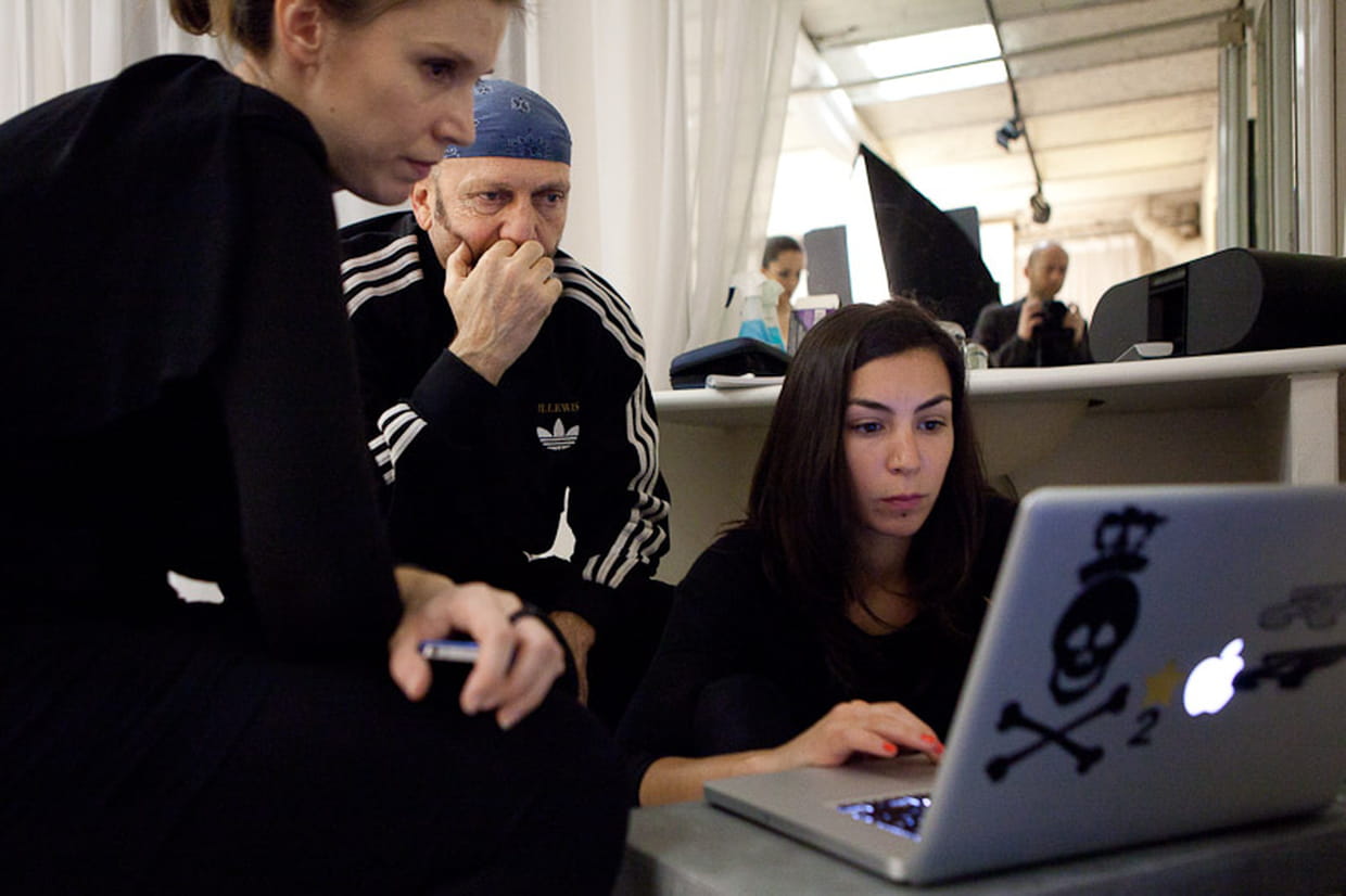 Les photos sont immédiatement transférées sur ordinateur pour valider la prise de vue avant de passer à l'ensemble suivant. L'assistante numérique d'Hervé Lewis récupère les images et les passent en noir et blanc pour mieux visualiser le rendu final.