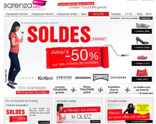 Chez Sarenza.com, c'est la fête le premier jour des soldes puisque les 100 premières commandes sont offertes ! De quoi se laisser tenter par quelques paires de chaussures de marque ! Des réductions allant jusqu'à -50 % permettront de craquer sans culpabiliser. Et en région parisienne, la livraison en vélo et l'essayage à domicile sont toujours proposés jusqu'à 22 heures pour un supplément allant de 10 à 20 euros.