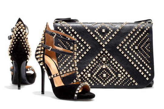 Chaque paire de talons possède un sac assorti, histoire de jouer le jeu à fond. Ainsi, les accros de Zara et des défilés pourront arborer fièrement un cabas noir et blanc façon croco, une besace très rock'n'roll ou bien une pochette rigide cloutée.