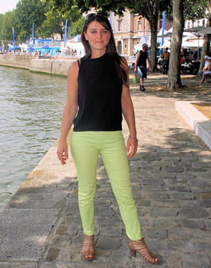 On aime : le choix de son pantalon flashy avec un haut noir chic. Pour s'habiller, Emilie chine énormément à Paris. Elle veut être à l'aise tout en restant originale. C'est gagné !