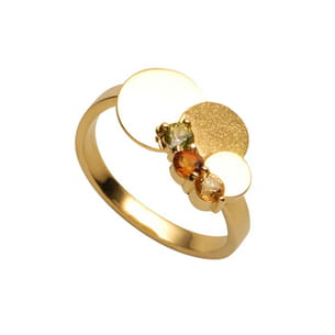 Signée Golliat, cette bague en or jaune est surmontée de 3 topazes passion ENLIGHTENED - Swarovski Elements.