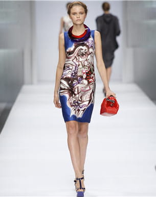 "Tribal'tropolis", c'est le nom que la créatrice Ivana Omazic a donné a la collection printemps-été 2009 de Céline. "Une même époque, un même monde mais des réalités radicalement différentes. Mon inspiration pour cette collection vient des tribus, de leurs vêtements et de leurs ornements. Je les ai réinterprétés pour notre monde moderne, urbain, afin qu'ils deviennent complices." En atteste cette robe droite en mikado imprimé tatouage graffiti japonais d'une jolie couleur indigo.