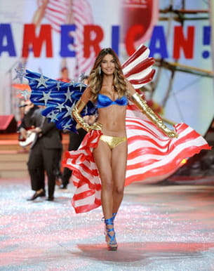 Voici une autre jeune maman au corps enviable. L'américaine Lily Aldridge, chez Victoria's Secret depuis 2009, a accouché d'un enfant en juin dernier. Avec cet ensemble dans le couleur des Etats-Unis, elle a sans doute rallumé le patriotisme de ses concitoyens ! Peut-être que Mitt Romney aurait dû faire appel à ses services pour sa campagne !