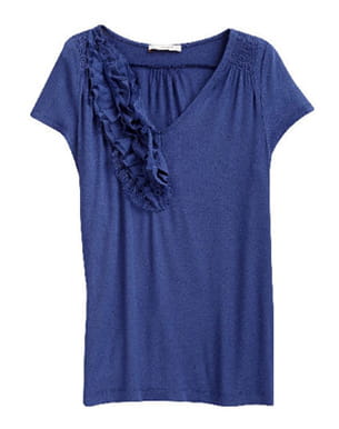 Envie d'un tee-shirt qui ne manque pas de style ? Alors voilà de quoi nous ravir avec ce modèle bleu signé Cyrillus. On aime tout particulièrement son décolleté en V agrémenté d'un effet volanté. Un basique revu et corrigé avec une pointe d'élégance pour une pièce facile à porter au quotidien.