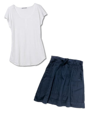 On révise ses classiques avec ce duo bleu marine et blanc. Deux basiques pour un style sûr et risque de fashion faux-pas, voilà ce que nombre de nous attendent. Alors, on mise sur une jupe bleue et fluide que l'on associe à un tee-shirt dans le même esprit. Le résultat, très féminin et agréable à porter pendant les beaux jours, s'accordera parfaitement à une jolie paire de ballerines !