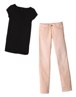 Le rose a le vent en poupe. Les fans de la tendance color block opteront pour le fuchsia mais les plus romantiques craqueront pour sa version poudrée ou dragée. C'est cette dernière qui est privilégiée avec ce pantalon très féminin. Le duo joue sur une simplicité efficace qu'on ne peut qu'adorer !