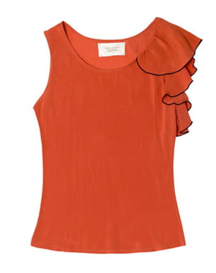 Pour vitaminer un peu sa garde-robe, on s'offre ce joli top signé Zara. Avec son asymétrie volantée, il prend des allures flamenco. Une façon d'oser le orange tout en restant élégante et classe. Merci Zara !