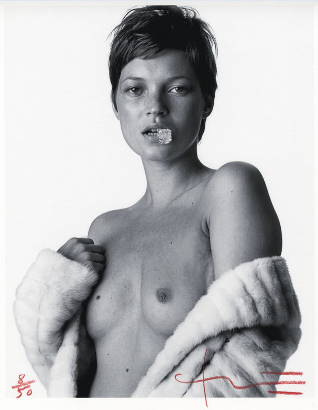 Le photographe Bert Stern s'est inspiré d'une séance photo qu'il avait réalisé avec Marylin Monroe pour cette série de photos publiées dans le Vogue France, en 2002, tirage Fine Art 30 x 40 cm.
