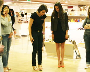 Après un premier passage, la coach me conseille d'enlever mes collants car je glisse un peu dans mes escarpins. Elle nous révèle également les secrets d'une démarche élégante en talons hauts. Son conseil ? Ne pas marcher les pieds en-dedans mais les écarter légèrement vers l'extérieur. Une vraie démarche de princesse !