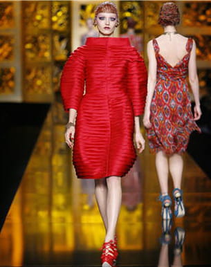 Le créateur a puisé dans l'histoire, du côté de Paul Poiret et de son goût pour les lignes "orientalisantes". Sarouels dorés, broderies fines et couleurs vives se marient ainsi avec des formes plus arrondies, qui libèrent le corps de la femme.