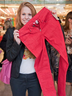 "Je suis très contente car j'ai pu acheter ce jean rouge que j'avais repéré chez Mango à -50%. Je le voulais absolument pour aller à une soirée sur le thème du rock. Sinon en général, je profite des soldes pour acheter les basiques comme les jeans, les chaussures ou les imperméables. Quand je fais les soldes j'essaye toujours de venir avant la pause déjeuner et je monte aussi aux étages des grands magasins pour avoir moins de monde en caisse !"