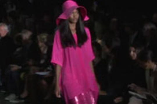 Avec un taxi jaune "so new-yorkais" pour élément de décor, Donna Karan fait défiler sa ligne "girly" DKNY. Place à l'esprit sixties, aux couleurs flashy et aux imprimés chatoyants. La créatrice nous emmène de New York à Los Angeles. Elle mise sur des tailleurs-pantalons"skinny" d'un côté et des robes-chemises aériennes et des shorts de l'autre. Côté couleurs, les classiques noirs et blancs rivalisent avec un rose fuchsia ou un violet franc. Donna Karan parle d'une explosion d'imprimés et joue sur les matières : la transparence de la soie dévoile des jupes brillantes et le tweed rose vient habiller des robes de plage. La capeline, portée fièrement par tous les mannequins, est l'accessoire de rigueur pour un été où souffle un vent de liberté et où il fera bon paresser sur la plage. Pas de contrainte, juste du style. Un vestiaire facile à porter et qui célèbre la femme américaine pendant la belle saison. On verrait bien les héroïnes de Sex and the City dans ces jolies tenues. Et nous aussi d'ailleurs !