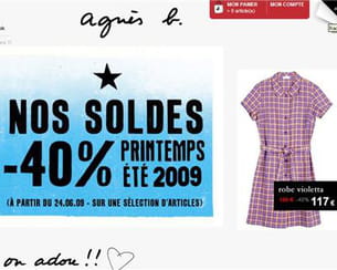 Chez la créatrice Agnes b, on ne fait pas les choses à moitié. Vous trouverez en effet des réduction de -40 % dès à présent sur une sélection d'articles homme, femme et enfant, mais aussi des accessoires et articles de voyage. Un ongle soldes vous y mènera directement. A vous la robe écossaise à 117 euros au lieu de 195.