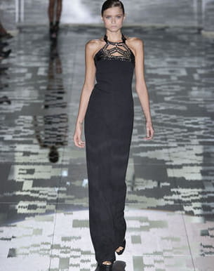Ah la chic intemporel de la longue robe noire ! Gucci sait revisiter ce grand classique avec des détails métallisés qui viennent orner le décolleté. La ligne est parfaite.