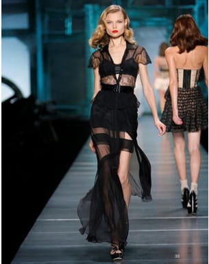 Amoureux des jeux de transparences, John Galliano dessine ici une robe sexy, qui dévoile les jambes et une partie du buste avec subtilité. On aime les pans fluides qui s'envolent à chaque pas pour un très chic effet de légèreté.