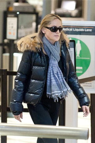 En robe du soir ou en doudoune, la belle actrice a toujours le style ! Pour affronter le froid, Sharon Stone a choisi la sobriété et l'allure certaine du coloris noir – parmi tant d'autres – de ce manteau incontournable de l'hiver 2012-2013.