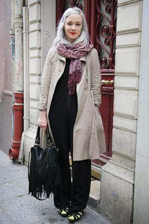 Son look : une tunique COS, un sac, une écharpe, un manteau et des chaussures H&M.