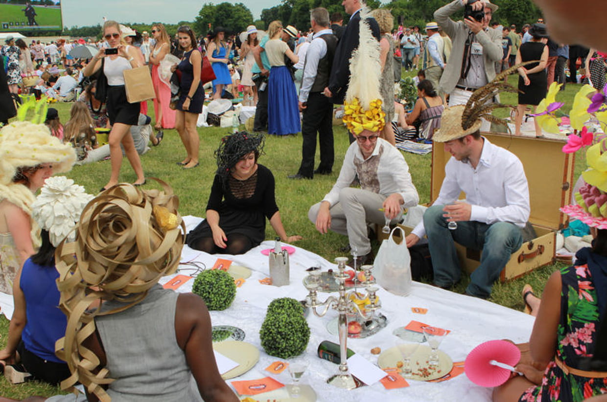 Si le prix de la plus belle "table" de pique-nique n'existe pas officiellement, on a décidé de l'attribuer à cette troupe de joyeux lurons chapeautés. Car même les messieurs ont décidé de jouer le jeu. Et quelle mise en scène : entre chandeliers argentés et buissons, on avait bien envie de partager avec eux leur festin.
