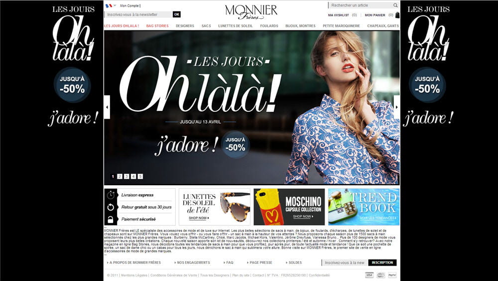 Des prix réduits sur vos marques de luxe préférées ? Vous les attendiez, Monnier Frères l'a fait. Mais ce n'est pas tout... A l'occasion de ses jours "ohlàlà", où le site propose déjà des réductions allant jusqu'à – 50 %, le spécialiste de la vente en ligne d'accessoires griffés s'associe au Journal des Femmes pour vous faire bénéficier de 10% supplémentaires (*découvrez le code promo ci-dessous). What else ?