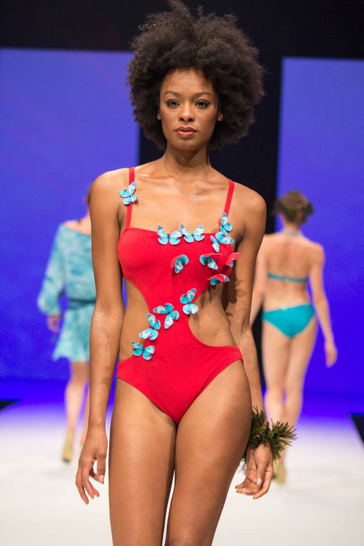 Trikini rouge avec des papillons bleus Anima Beachwear.