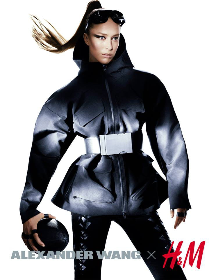 La collaboration Isabel Marant s'était montrée casual chic, celle de Maison Martin Margiela excentrique, la nouvelle (et très attendue) signée Alexander Wang sera sportswear ou rien ! Après sa collection printemps-été 2015 placée sous le signe de la sneaker, il apporte sa vision hivernale chez le géant suédois. Jamais les combinaisons de sport n'ont été aussi cool que sous le regard du New-yorkais. Et le directeur artistique de Balenciaga ne fait pas les choses à moitié puisqu'il explore les vestiaires du hockeyeur, du footballeur et du boxeur qu'il mixe avec des lunettes de ski. Autant de sports physiques et violents qu'incarnent les mannequins Isabelle Fontana, Raquel Zimmerman et Joan Smalls. Côté messieurs, qui est mieux placé pour le faire que les athlètes eux-mêmes ? Le footballeur Andy Carroll et le boxeur Rivaldino dos Santos se joignent à la campagne et y injectent une forte dose de testostérone (un petit régal pour les yeux !). Alexander Wang sait nous rendre belles mais surtout puissantes et combatives telles des princesses viking. Les matériaux paraissent être taillées dans le béton, les coupes sont oversize et le néoprène est roi : la collection se révèle herculéenne tant par son allure que par le déchaînement qu'elle créera lors de sa sortie. Le match débutera mondialement dès le 6 novembre. Dernière ligne droite les filles !