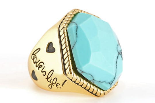 On pleurait depuis trop longtemps déjà les bagues Arty de Yves Saint Laurent, avec leur grosse pierre et leur côté clinquant et imposant, qui habillaient nos tenues même les plus basiques. Ce fut un "fashion drame" quand ils les ont retirées de la vente. Mais c'était sans compter sur la créatrice et business woman, Diane Von Furstenberg, qui se met à son tour aux bijoux fantaisie en 2015. Et dans les visuels déjà dévoilés, on découvre une sublime bague XXL dorée avec sa turquoise, qui va pouvoir remplacer notre regrettée Arty. Au menu de cette future collection, également, on sait déjà qu'on pourra retrouver les emblèmes de DVF comme les lèvres, les cœurs et les pièces. Dès le mois de février 2015 vous pourrez donc shopper cette collection de bijoux signée Diane Von Furstenberg, qui s'est associée pour l'occasion à l'enseigne de joaillerie Haskell Jewels LLC, à des prix allant de 55 à 495 euros. Bracelets, bagues, boucles d'oreilles... On y trouvera une gamme complète et en total accord avec l'ADN de la maison DVF qui aime la couleur et les femmes de caractère. Vous l'aurez compris, cette année mode sera sous le signe de Diane Von Furstenberg qui est, comme à son habitude, sur tous les fronts, entre son émission de TV sur la chaîne E! et sa première collection de bijoux fantaisie.