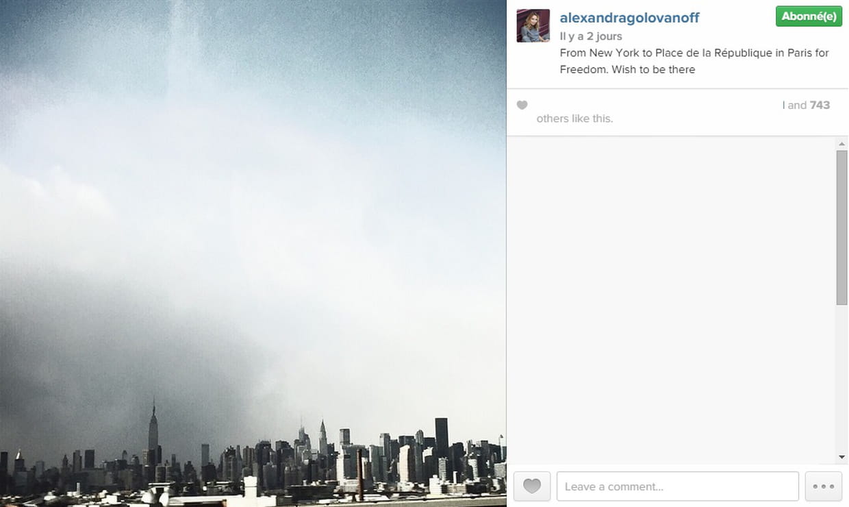 Compte Instagram de Alexandra Golovanoff (journaliste mode et animatrice TV), en soutien à Charlie Hebdo