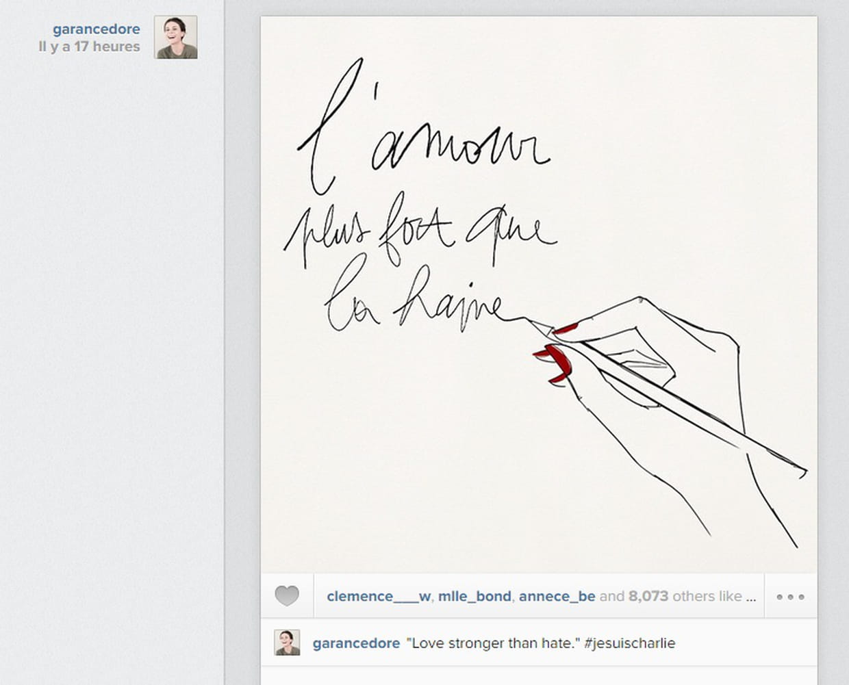 Compte Instagram de Garance Doré (blogueuse mode et chroniqueuse), en soutien à Charlie Hebdo