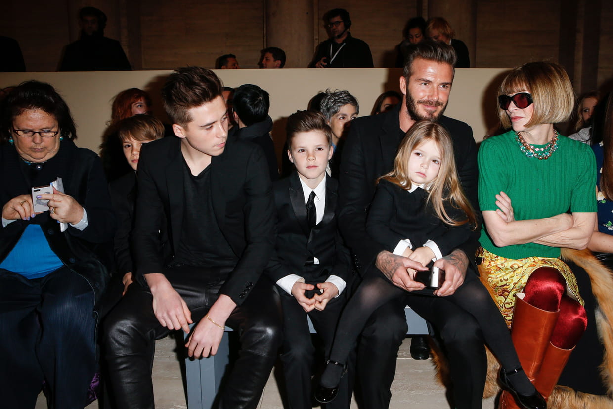 Chez les Beckham, on vient soutenir en famille ! Ainsi, David, Brooklyn, Harper, Cruz et Roméo Beckham étaient en front-row aux côtés d'Anna Wintour et de Suzy Menkès, au défilé de la matriarche Victoria. C'est beau.