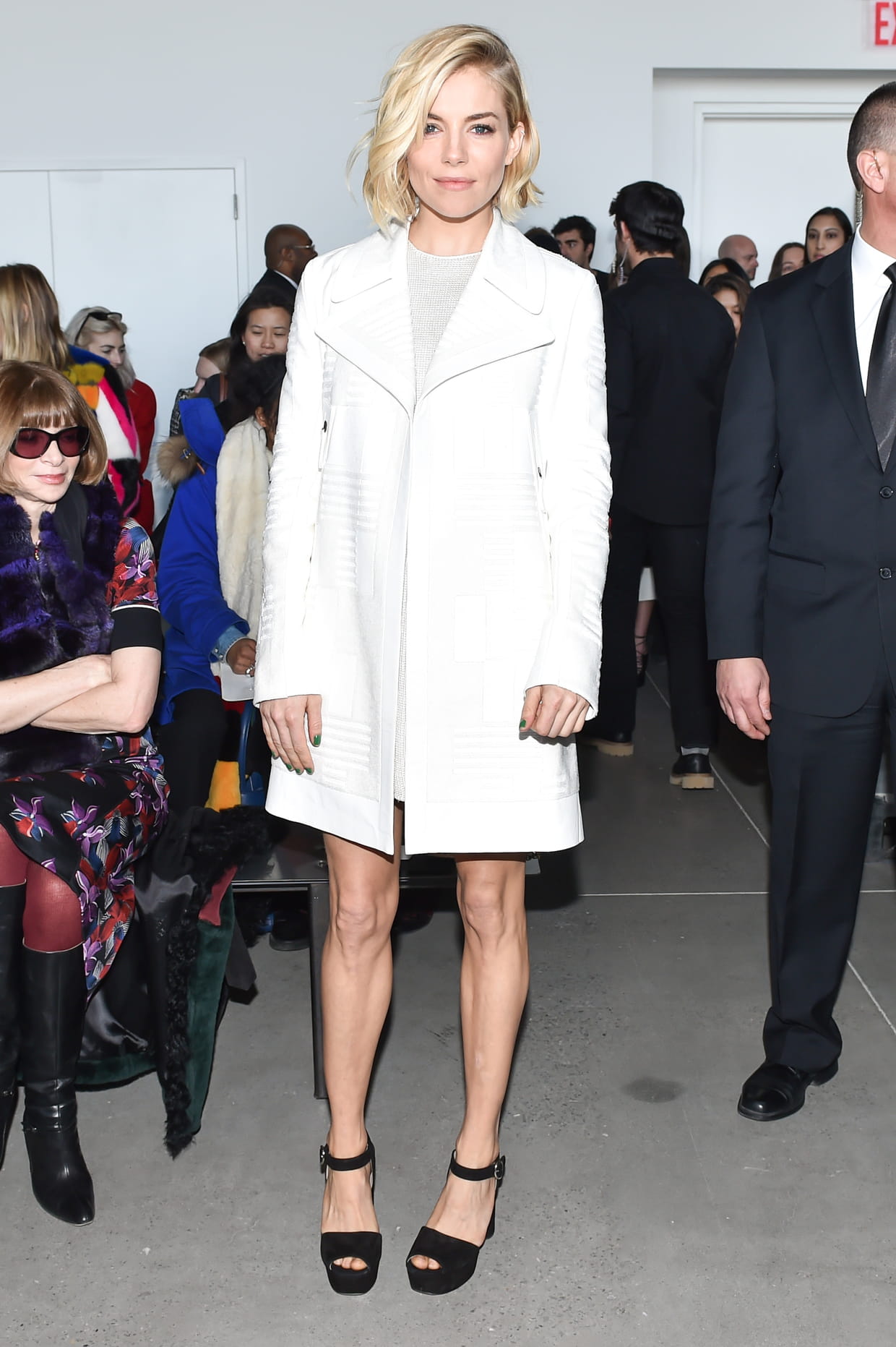 L'ex de Jude Law a pris place au côté d'Anna Wintour lors du défilé Calvin Klein. Vu le regard compatissant de la papesse de la mode, il semblerait qu'Anna ait adoubé le choix vestimentaire de Sienna.