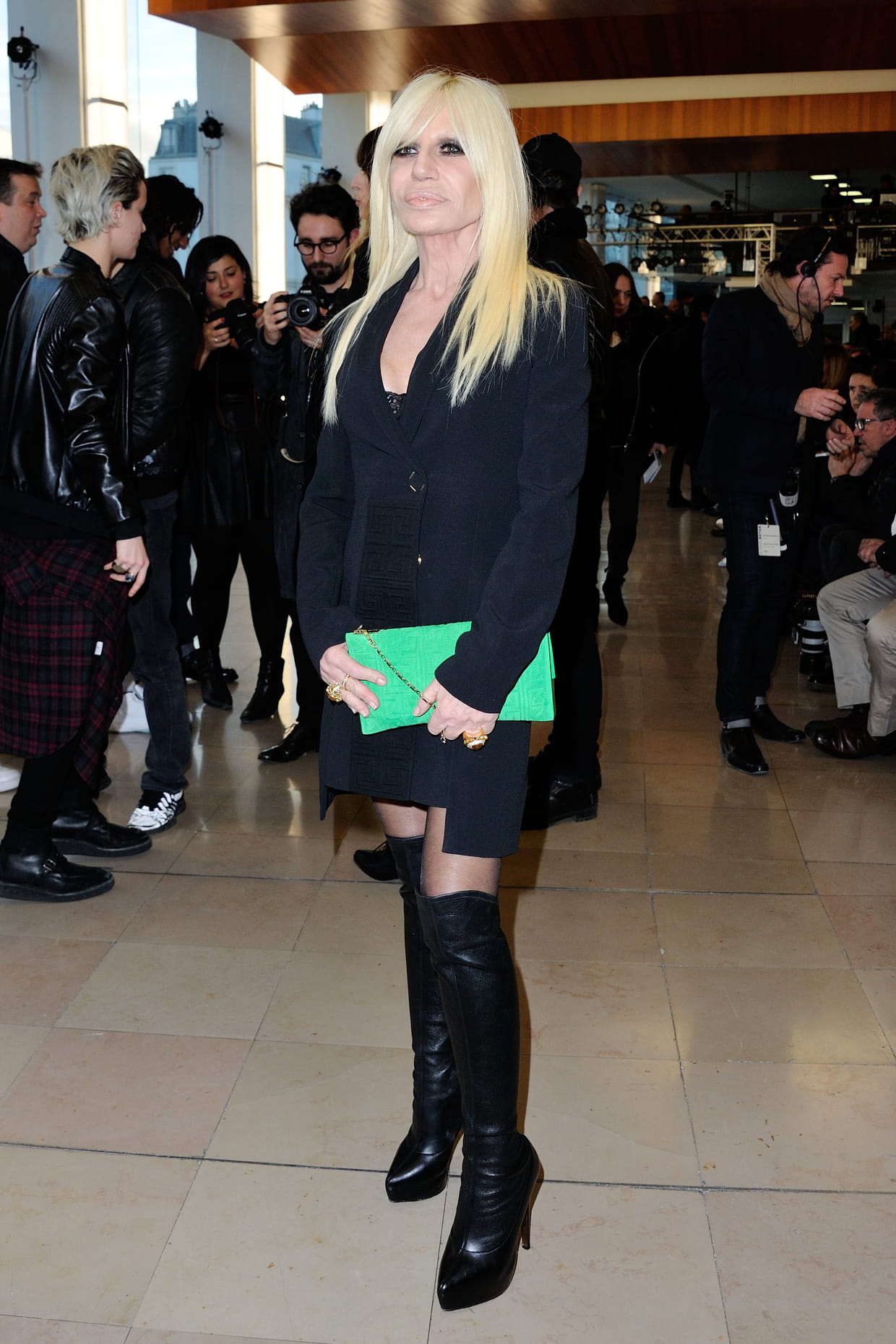 Donatella Versace avait invité Anthony Vaccarello à participer à la collection Versus Versace. Du coup, le créateur a chaleureusement invité l'Italienne en front row de son défilé ; c'est ce qu'on appelle un échange de bons procédés.