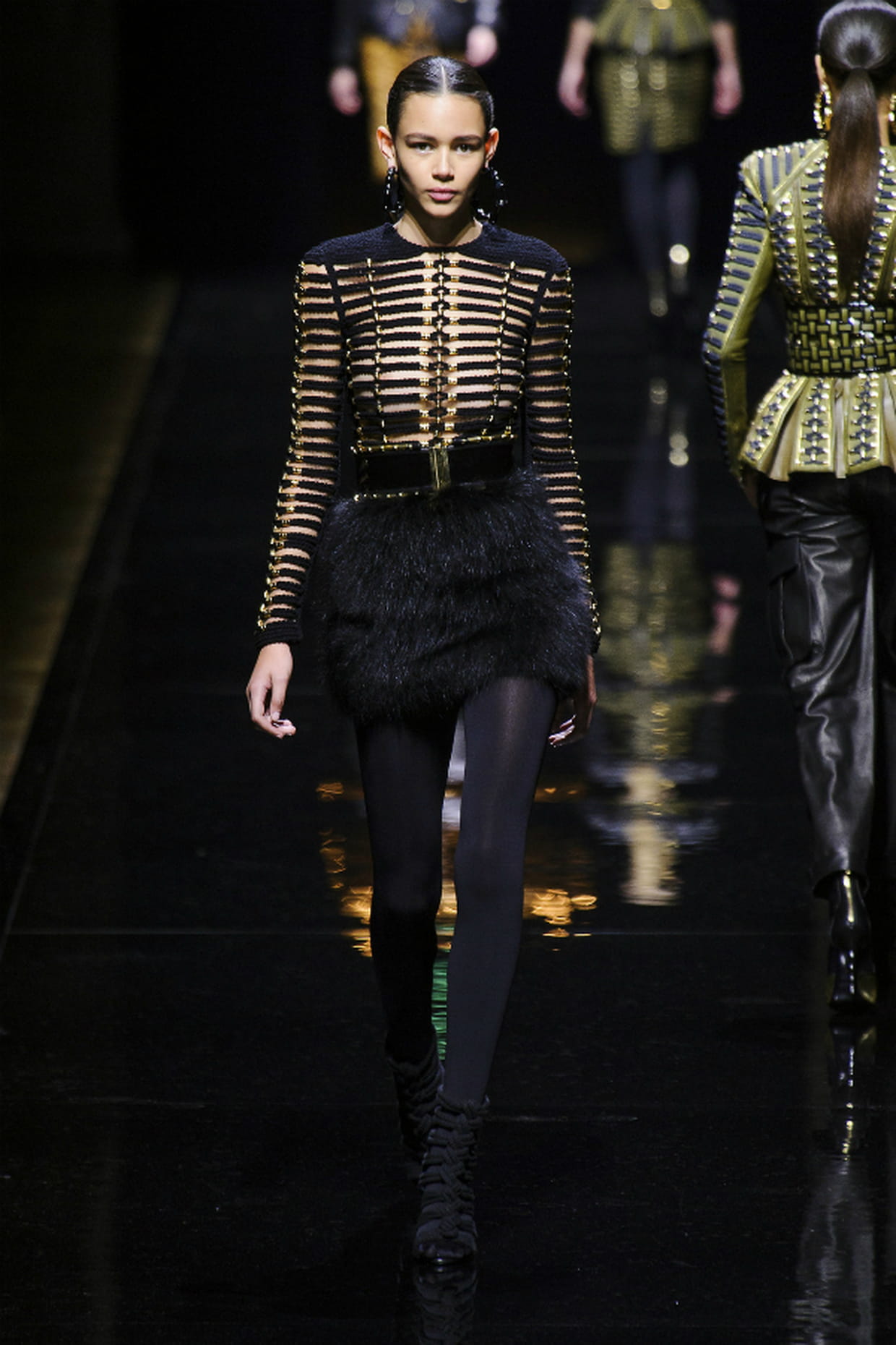 Les aventurières de la "Balmain Army" revêtaient des pièces en cordage sur le défilé automne-hiver 2014-2015, enserrant la poitrine pour une allure indigène restée dans les annales. Cette pièce incroyable fera bel et bien partie de la future collection H&M x Balmain, comme nous le dévoilait le top Jourdan Dunn aux Billboard 2015, vêtue d'un top à la ressemblance troublante.