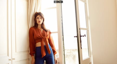 Jeanne Damas redevient styliste le temps d'une collection capsule pour la marque Reformation cette fois-ci ; une ligne éthique aux accents seventies qui installe définitivement la tendance pour la saison à venir.